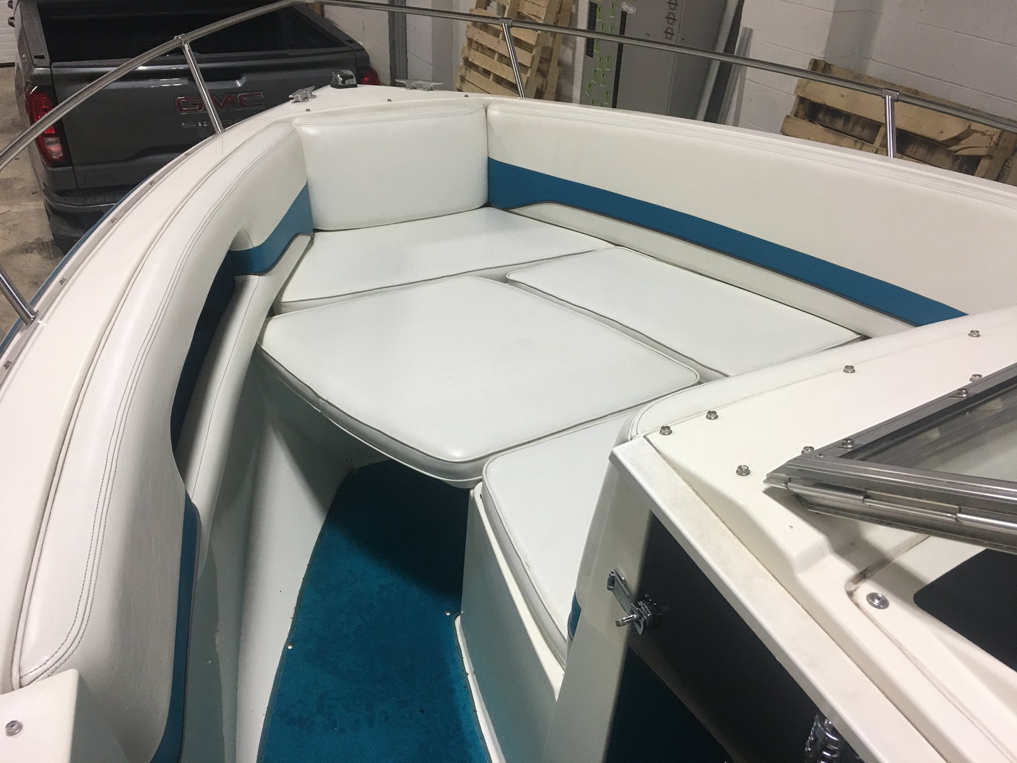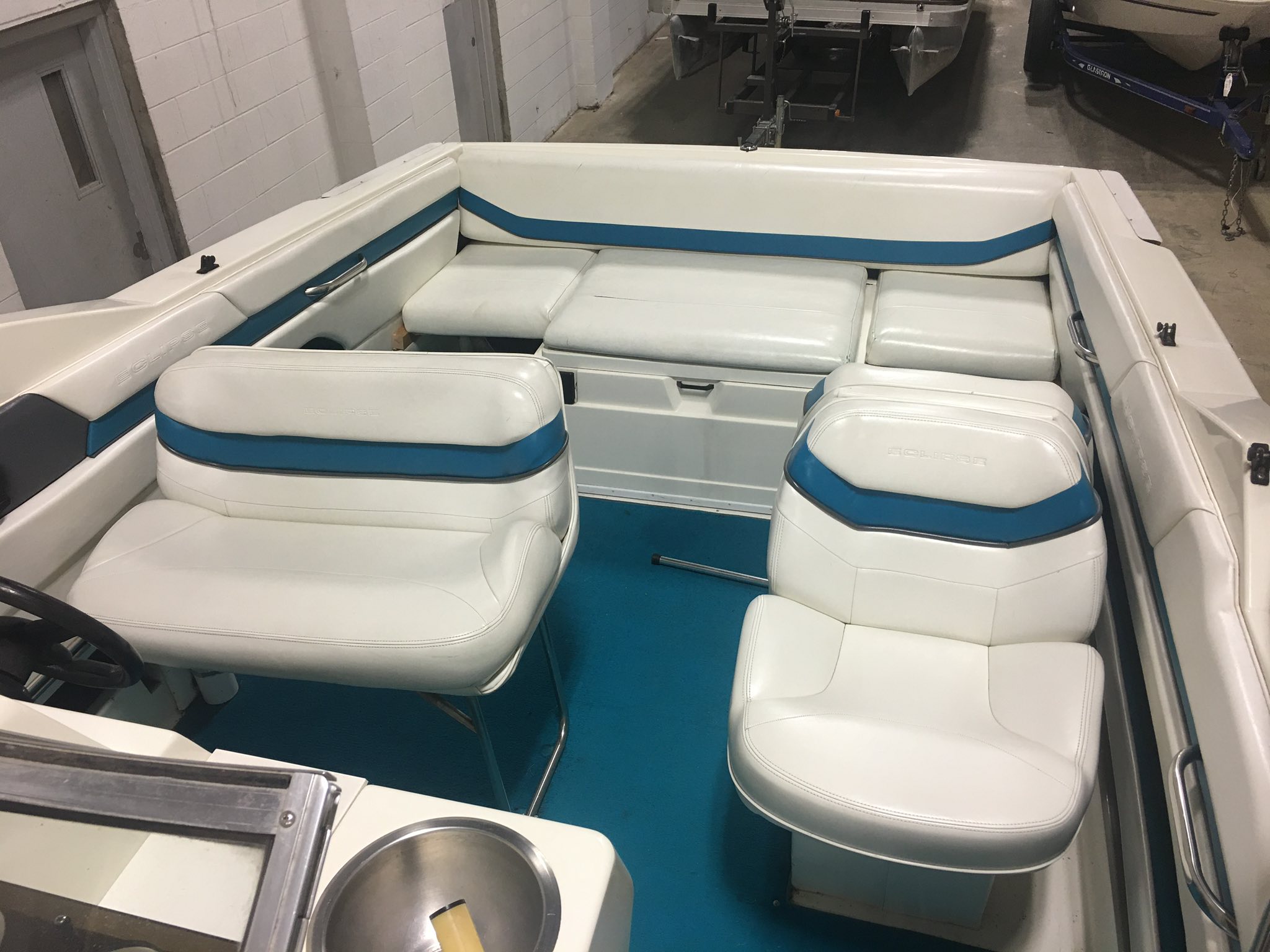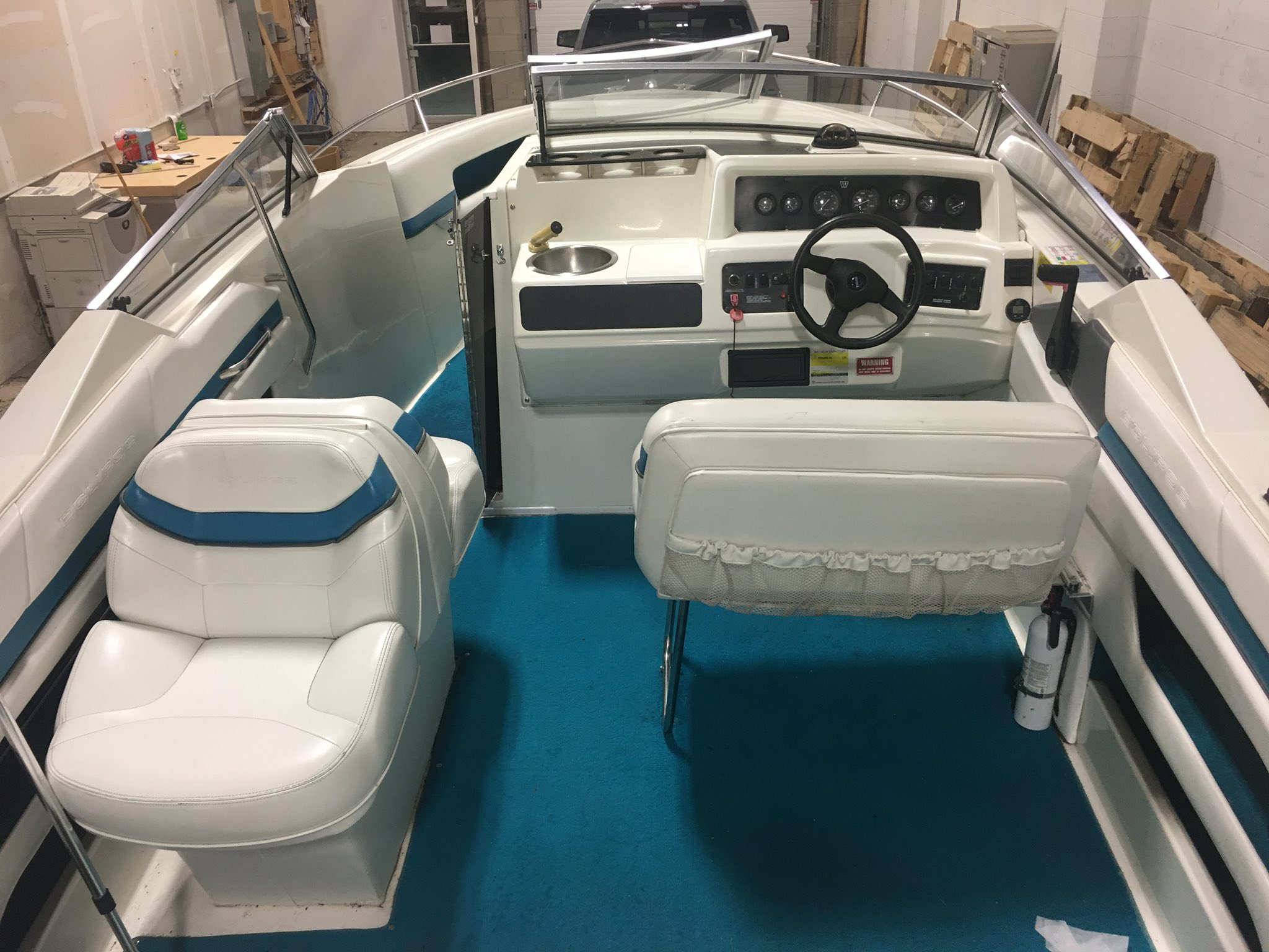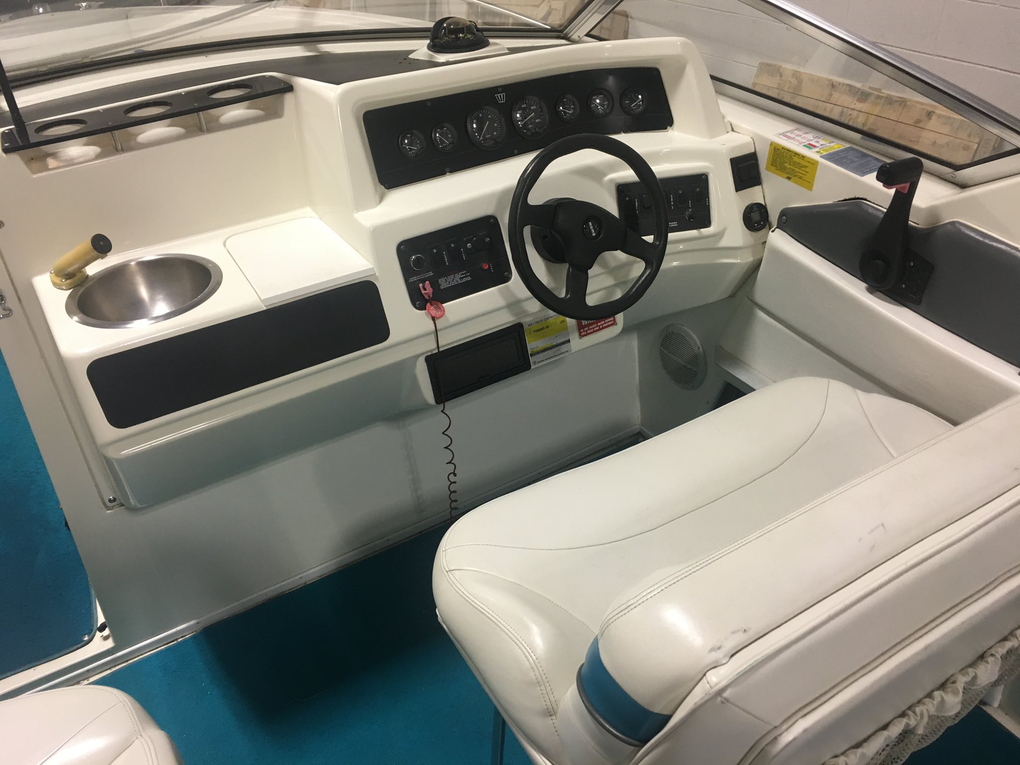 This big boy bowrider has been in our possession for years simply because it’s been the “demo of choice” for the fellows! No wonder there though, it’s sooo spacious and can handle any big water you can throw at it! (And believe me we have!) Generously powered by a 5.8L (270hp) V8 with Volvo-Penta duo prop and rides beautifully on that tandem axle trailer. To help the guys get their new demo I’ve lowered the boom to $8990 if it goes before fall!